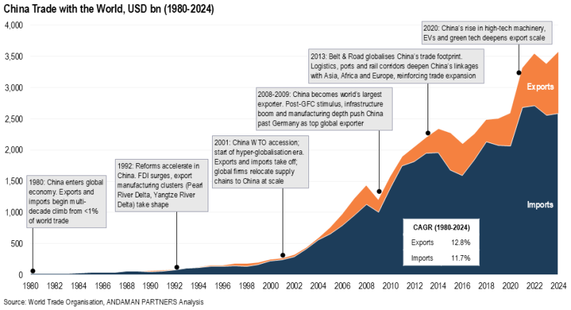 Together, these shifts highlight the fundamental reality that China’s impact on global trade extends far beyond export dominance. It is equally a story of demand creation, commodity-market transformation and the integration of global production networks around a single industrial anchor.