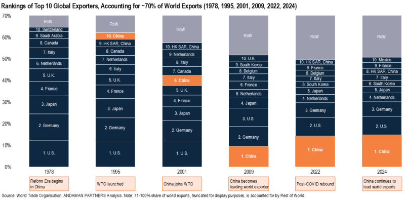 China’s industrial scale, infrastructure, supplier networks and production efficiency cannot be replicated in the foreseeable future. China will continue to dominate intermediate goods, capital equipment and advanced manufacturing segments essential to global supply chains.