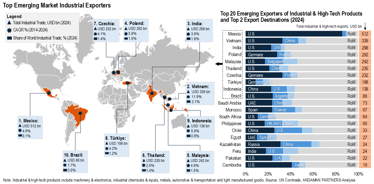 While industrial demand remains concentrated in the U.S., China and the EU, a new generation of emerging-market exporters is expanding within global production networks, reshaping the geography of industrial sourcing.