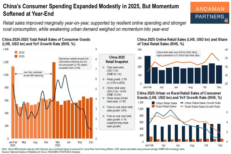 Retail sales improved marginally year-on-year, supported by resilient online spending and stronger rural consumption.