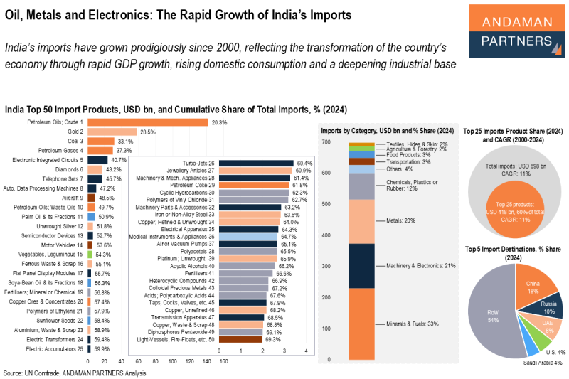 India’s imports have grown prodigiously since 2000, reflecting the transformation of the country’s economy.